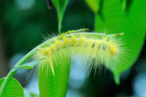 For instance, during this week-long silent retreat, I was walking on a path under some apple trees. Suddenly something dropped down in front of me. My initial reaction was: ”Eww!”. What’s that?!! I realized it was a caterpillar, a strange looking caterpillar. My judging mind kicked in. I saw holes in some of the leaves and thought, “It’s damaging the tree!”